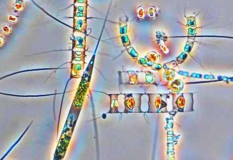 To nie jest Nowosielski ani Miró. To plankton roślinny, początki naszych pól i lasów, dębu i orzecha, niebieskiego bodziszka i czerwonej róży. Pojawił się w oceanach 2,5 miliarda lat temu. Ze światła, dwutlenku węgla, azotu, fosforu i wody, powstały mierzone w tysięcznych częściach milimetra, żywe organizmy, które produkują dla nas tlen.
