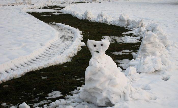 pieszych i nie ma co odśnieżać. Zdarł więc trawnik z