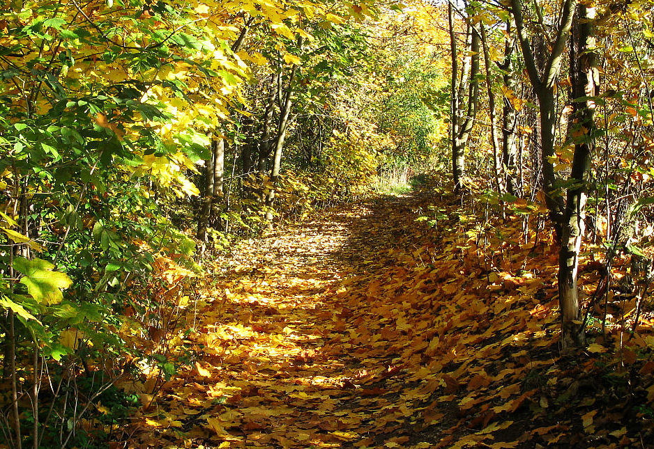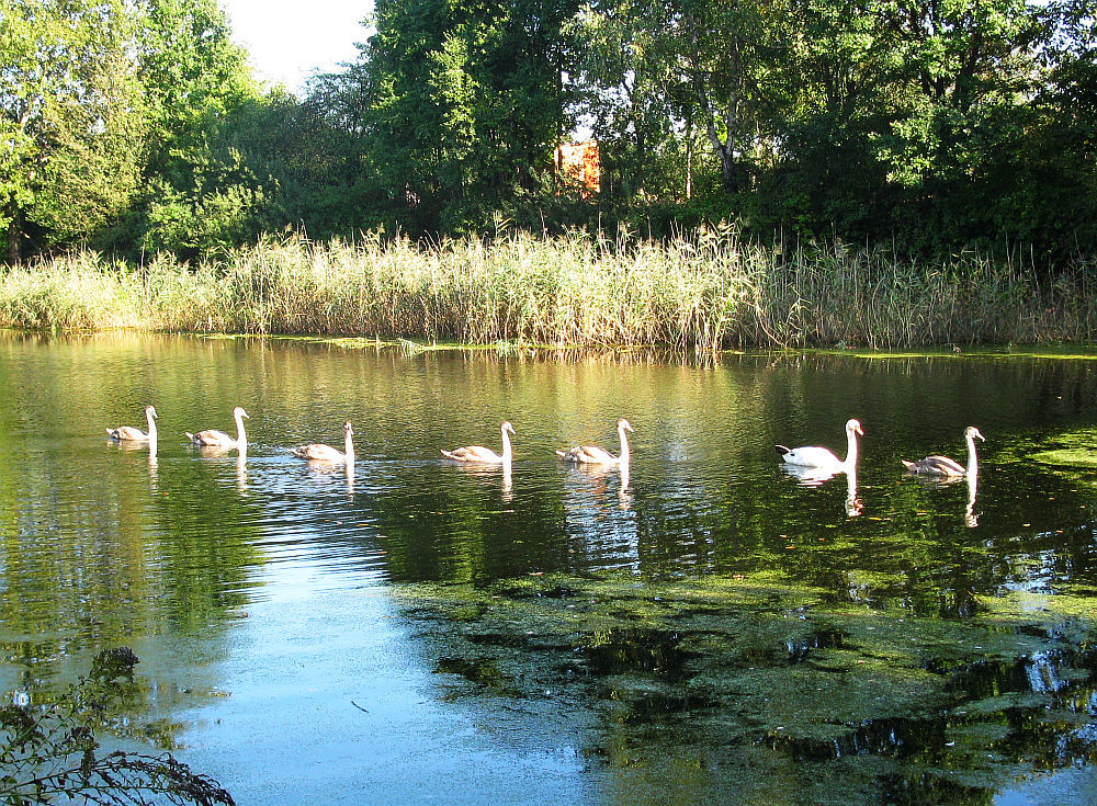 do łabędzi. Ścieżką poprzez gęste zarośla,