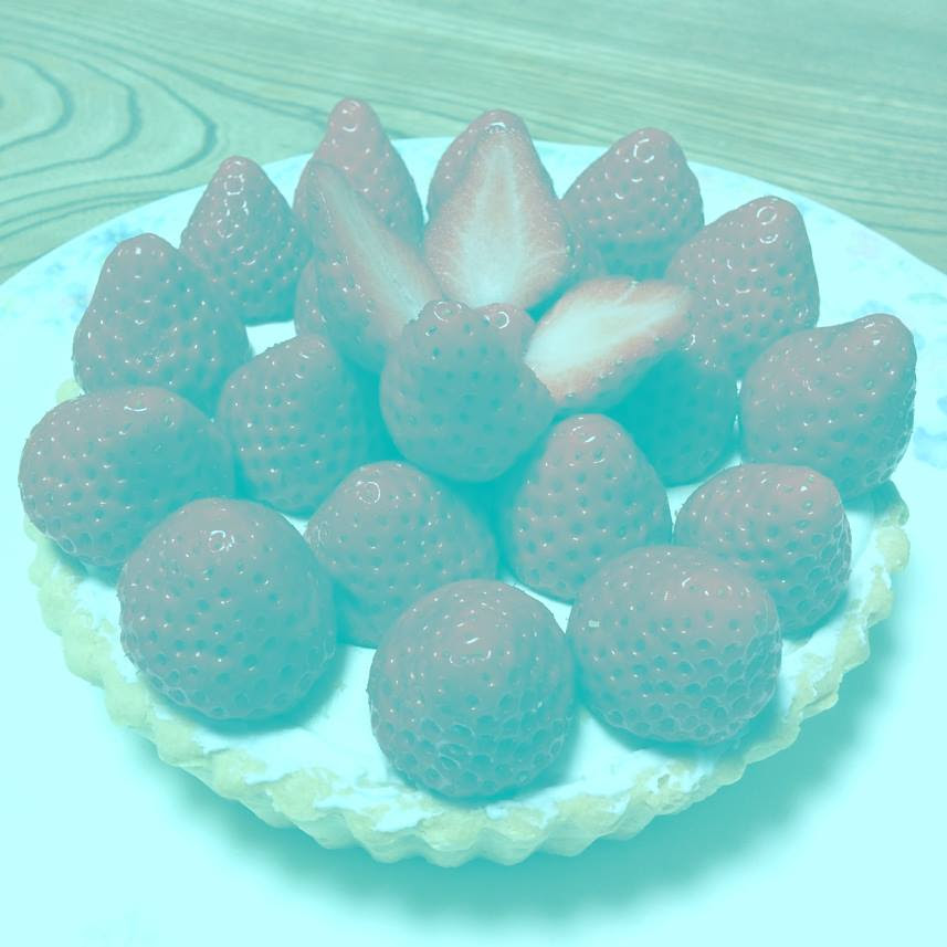 Kalifornijskiego, przesłonił zdjęcie truskawek niebieskim filtrem i widzimy je trochę zamglone, ale