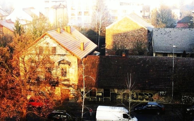 okolicy rodzina Batków. Wygląda jak zwykły blok, jedynie barokowy portal z