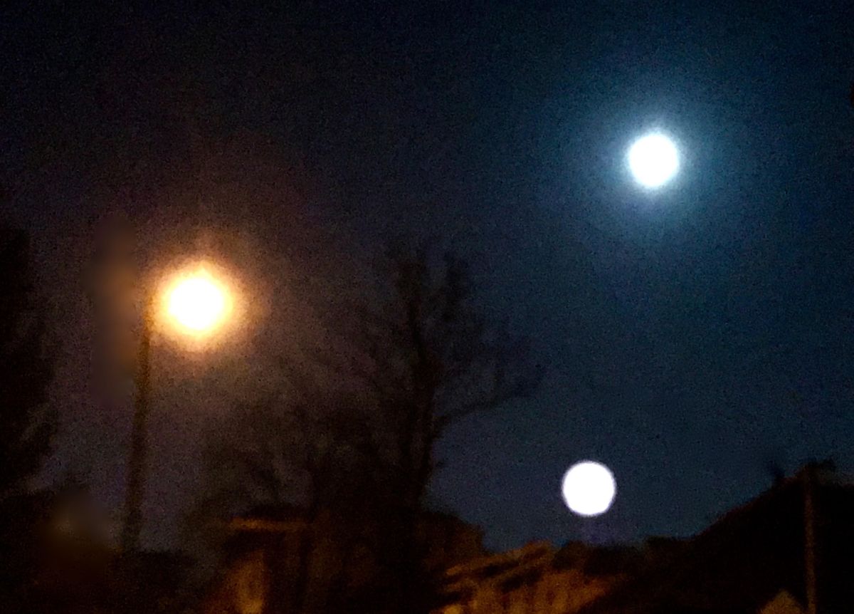daleko po lewej stronie a drugi po prawej bliżej, przyprószony